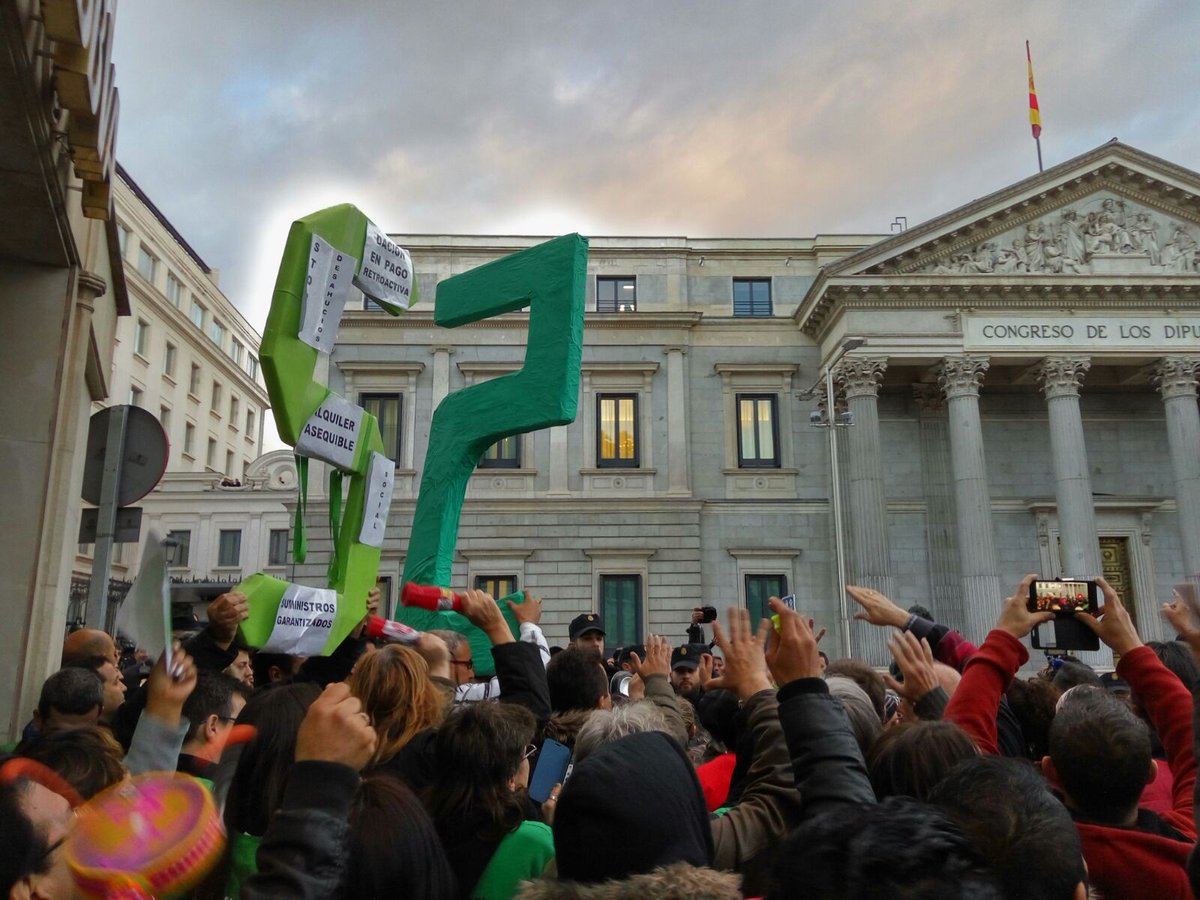 Coordinadora25S @Coordinadora25S 2 hHace 2 horasNO TOLERAMOS NI UN DESAHUCIO MÁS! #ConLas5delaPAH en la puerta del congreso. Si se puede, pero no quieren!