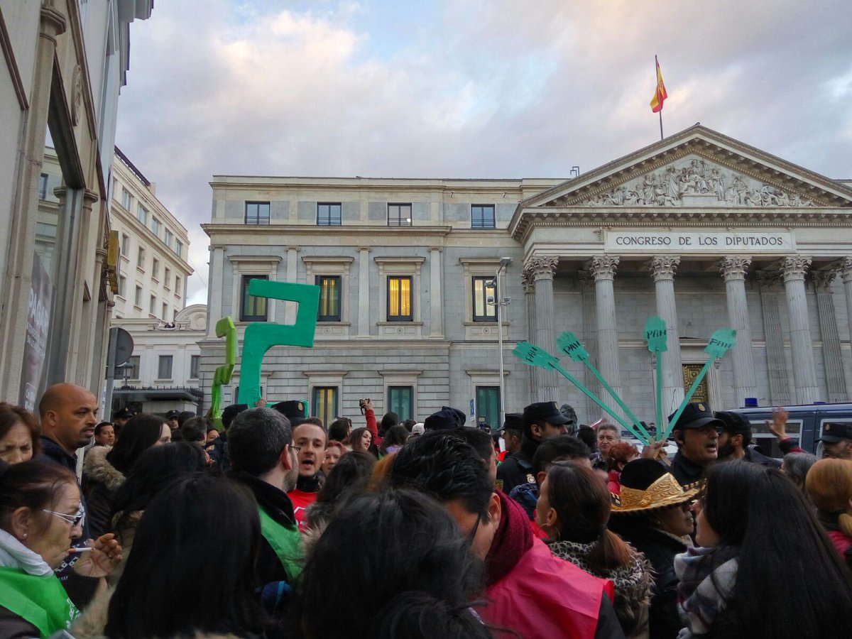 PAH Vallekas @pahvallekas 2 hHace 2 horasA las puertas del Congreso las compas dejan claro que hay que estar #ConLas5delaPAH.